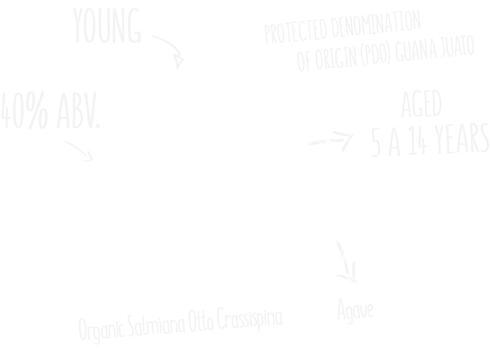 Our noble magueys are carefully harvested prior to a careful selection of piñas suitable in volume, maturity and yield. The initial preparation is carried out in the vapor ovens heated by steam, extracting the juice rich in sugar. For the milling, a stone roller is used to obtain the mash and then is placed in pine Wood containers where the fermentation will be done The yeast obtained isdistilled in a single step, preserving a large number of flavors.